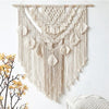 Orné de magnifiques feuilles en macramé, cette création bohème artisanale convient aussi bien en guise de tête de lit qu'en évidence au mur de votre salon. Redonnez vie à votre intérieur grâce à la richesse du macramé mural. Succombez à la beauté des détails de son tressage en macramé soigneusement conçu à la main.